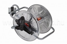 Galvanizált acél tömlődob 50 m 1/2”tömlöhőz, műanyag csatlakozóval és hajtókarral, fém falra szerelhető konzollal.
